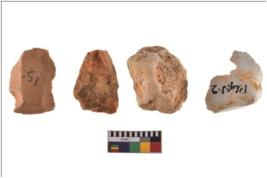 | Description / विवरण | Four worked utilised flakes. They are uneven with sharp edges. Most of them are tapering at one end. |