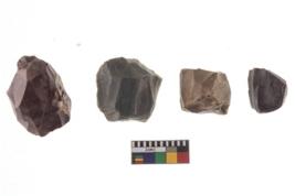 | Description / विवरण | Specimen of a fluted cores having several broad fluted marks indicating the detached blades from it. |