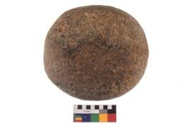 | Description / विवरण | A complete specimen of an oval shaped muller. It has battered surface along with curved ridges and oval section. |