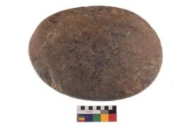 | Description / विवरण | A complete specimen of an oval shaped muller. It has battered surface along with curved ridges and oval section. |