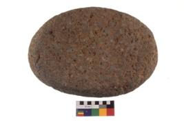 | Description / विवरण | A complete specimen of an oval shaped muller. It has battered surface along with curved ridges and oval section. |
