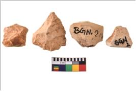 | Description / विवरण | Four worked utilised flakes. They are uneven with sharp edges. Most of them are tapering at one end. |