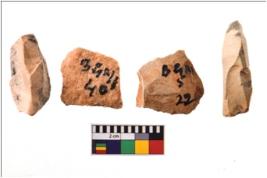 | Description / विवरण | Four worked utilised flakes. They are uneven with sharp edges. Most of them are tapering at one end. |