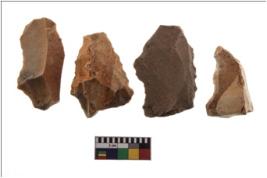 | Description / विवरण | Four worked flakes, some of them are irregular in shape whereas some are tapering at one end. |