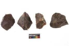 | Description / विवरण | Specimen of a fluted cores having several broad fluted marks indicating the detached blades from it. Q |