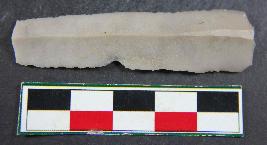 | Description / विवरण | Standard chert blade showing thick broad parallel sided, one dorsal is present, tringular in section and sharp cutting edges. Its surface is smooth. |
