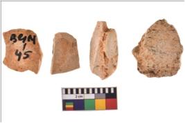 | Description / विवरण | Four worked utilised flakes. They are uneven with sharp edges. Most of them are tapering at one end. |