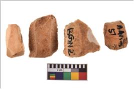 | Description / विवरण | Four worked utilised flakes. They are uneven with sharp edges. Most of them are tapering at one end. |