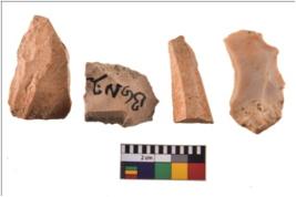 | Description / विवरण | Four worked utilised flakes. They are uneven with sharp edges. Most of them are tapering at one end. |