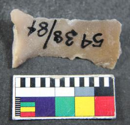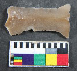 | Description / विवरण | Chert blade showing thick broad parallel sided, one dorsal is present, tringular in section and sharp cutting edge. Its surface is smooth. |