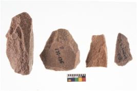 | Description / विवरण | A rectangular flake with wavy thick distal end and broken functional top. It reined pebbly cortex on one side and irregular thin edge on the other. |