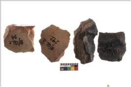 | Description / विवरण | Four worked flakes, some of them are irregular in shape whereas some are tapering at one end. |
