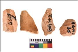 | Description / विवरण | Four worked utilised flakes. They are uneven with sharp edges. Most of them are tapering at one end. |