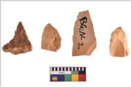 | Description / विवरण | Four worked utilised flakes. They are uneven with sharp edges. Most of them are tapering at one end. |