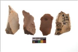 | Description / विवरण | Four worked flakes, some of them are irregular in shape whereas some are tapering at one end. |