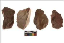 | Description / विवरण | Four worked flakes, some of them are irregular in shape whereas some are tapering at one end. |