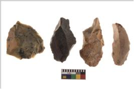 | Description / विवरण | Four worked flakes, some of them are irregular in shape whereas some are tapering at one end. |
