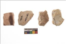 | Description / विवरण | Four worked flakes, some are uneven whereas some are tapering at one end. |