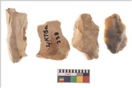 | Description / विवरण | Four worked flakes, some are uneven whereas some are tapering at one end. |
