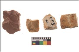 | Description / विवरण | Four worked flakes, some are uneven whereas some are tapering at one end. |