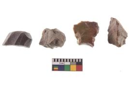 | Description / विवरण | Specimen of a fluted cores having several broad fluted marks indicating the detached blades from it. |