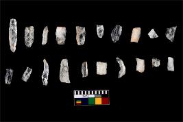 | Description / विवरण | There are n-20 of microliths, all of them are quartz. Some of them are partially broken. They show variation in colour, size and shape. Some of them are blunted back blades, points, triangles, trapezes, crescent and truncated blades. |