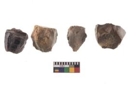 | Description / विवरण | Specimen of a fluted cores having several broad fluted marks indicating the detached blades from it. |