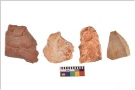 | Description / विवरण | Four flakes; most of them are tapering at one end with few having sharp edges. |
