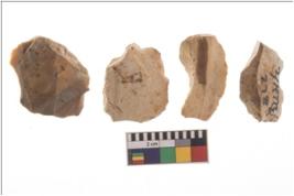 | Description / विवरण | Four worked flakes, some are uneven whereas some are tapering at one end. |