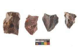 | Description / विवरण | Specimen of a fluted cores having several broad fluted marks indicating the detached blades from it. |