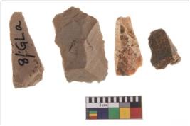 | Description / विवरण | Four worked flakes, some are irregular whereas some are tapering at one end. Most of them are having sharp edges. |