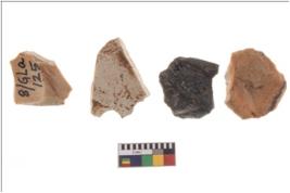 | Description / विवरण | Four worked flakes, some are irregular whereas some are tapering at one end. Most of them are having sharp edges. |