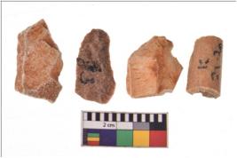 | Description / विवरण | Four flakes; most of them are tapering at one end with few having sharp edges. |
