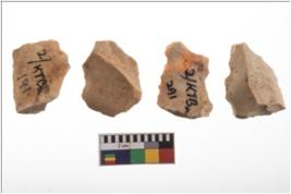 | Description / विवरण | Four worked flakes, some are uneven whereas some are tapering at one end. |