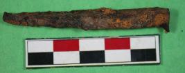 | Description / विवरण | Entirely incrusted fragment of nail with long truncated cone shape having rough surface. |