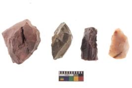 | Description / विवरण | Specimen of a fluted cores having several broad fluted marks indicating the detached blades from it. |