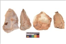 | Description / विवरण | Four flakes; most of them are tapering at one end with few having sharp edges. |