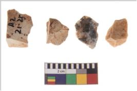 | Description / विवरण | Four worked flakes, some are irregular whereas some are tapering at one end. Most of them are having sharp edges. |
