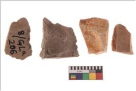 | Description / विवरण | Four worked flakes, some are irregular whereas some are tapering at one end. Most of them are having sharp edges. |