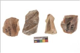 | Description / विवरण | Specimen of fluted cores showing impressions of blades removed from almost all the sides. |