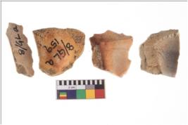 | Description / विवरण | Four worked flakes, some are irregular whereas some are tapering at one end. Most of them are having sharp edges. |