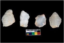 | Description / विवरण | Four flakes; most of them are tapering at one end with few having sharp edges. |