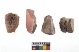 | Description / विवरण | Specimen of a fluted cores having several broad fluted marks indicating the detached blades from it. |
