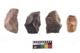 | Description / विवरण | Specimen of a fluted cores having several broad fluted marks indicating the detached blades from it. |
