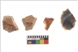 | Description / विवरण | Four worked flakes, some are uneven whereas some are tapering at one end. |