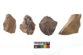 | Description / विवरण | Specimen of a fluted cores having several broad fluted marks indicating the detached blades from it. |