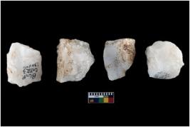 | Description / विवरण | A specimen of a fluted core having several broad fluted marks indicating the detached blades from it |