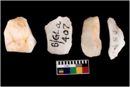 | Description / विवरण | Specimen of fluted cores showing impressions of blades removed from almost all the sides. |