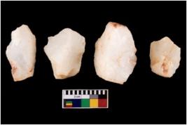 | Description / विवरण | Four worked flakes, some are tapering at one end. |