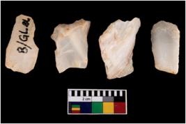 | Description / विवरण | Four worked flakes, some are tapering at one end. |